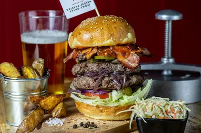 “Restauracja cieszy się wysokimi ocenami głównie za pyszne, soczyste burgery z szerokim wyborem opcji dietetycznych (keto, paleo, wege) i możliwością personalizacji. Obsługa jest chwalona za profesjonalizm i miłą atmosferę, a lokal za klimat i czystość. Pojedyncze negatywy dotyczą smaku niektórych burgerów i dostępności dań.”